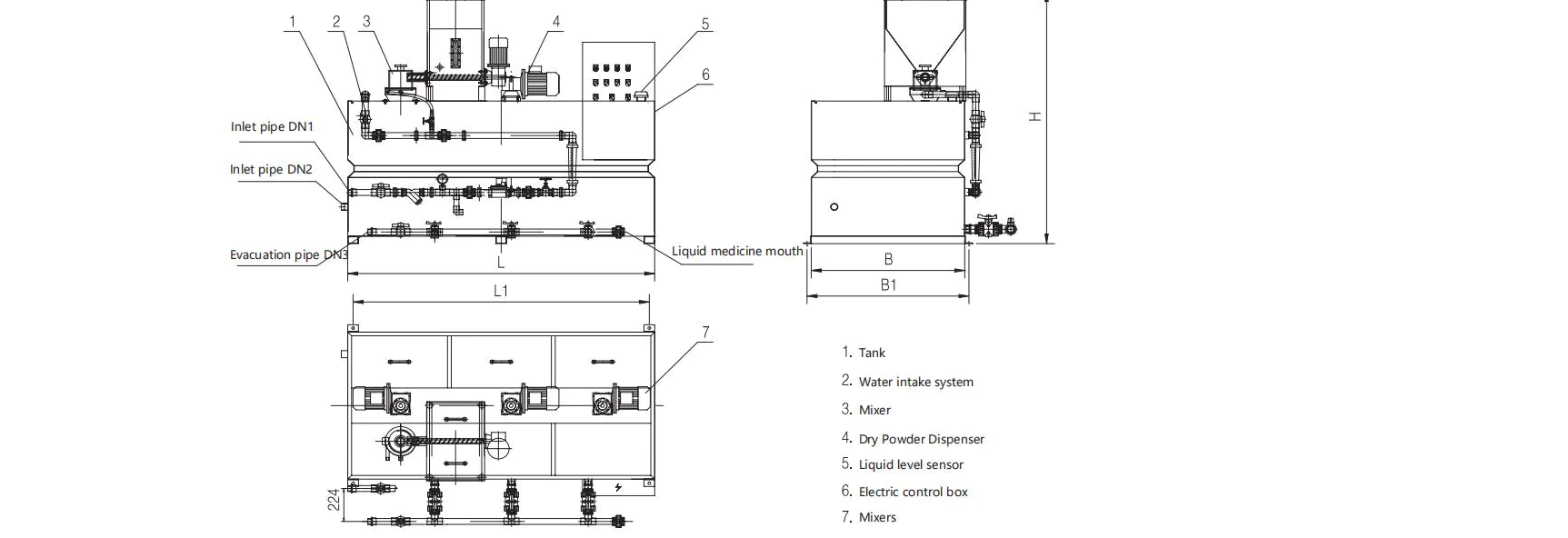 Traditional dosing systems often require the separate purchase of multiple devices, followed by on-site installation, piping, and commissioning. This process is not only complex but also prone to problems such as interface incompatibility and unreasonable layout. Integrated dosing devices, on the other hand, adopt a modular structure, pre-integrating all core components onto a single frame or corrosion-resistant base. Piping, electrical, and linkage commissioning are completed before delivery; on-site installation only requires connecting the inlet and outlet water pipes and power supply.